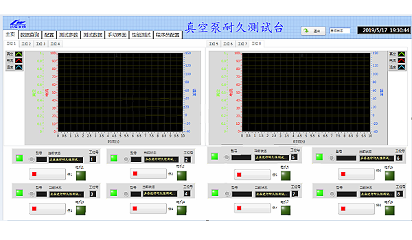 真空泵磨合檢測(cè):可讓真空泵抽到設(shè)定時(shí)間或設(shè)定的真空度,放氣到設(shè)定的下限,再抽到設(shè)定的真空度,檢測(cè)最大電流值,恢復(fù)到設(shè)定值的時(shí)間